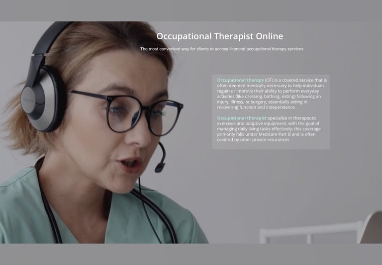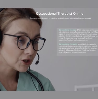 Occupational Therapist Online offers a client-centered approach that helps you to develop healthy habits and coping mechanisims to improve you quality of life and to "occupy" your life in a more positive and fulfilling way, beyond just symptom management.