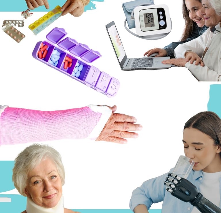 Adaptive equipment (such as shower chairs, or equipment to make daily tasks easier and energy conservation)